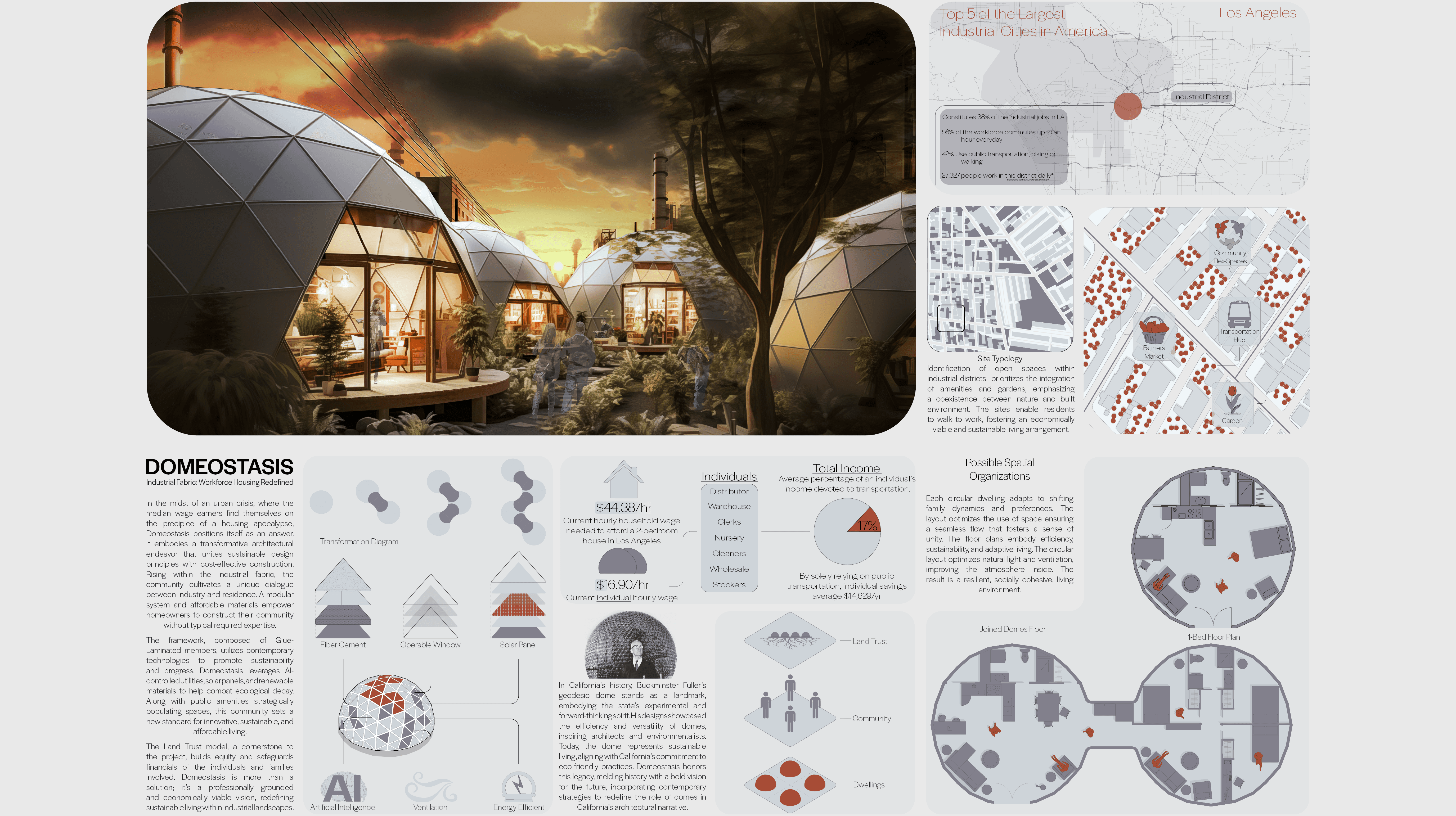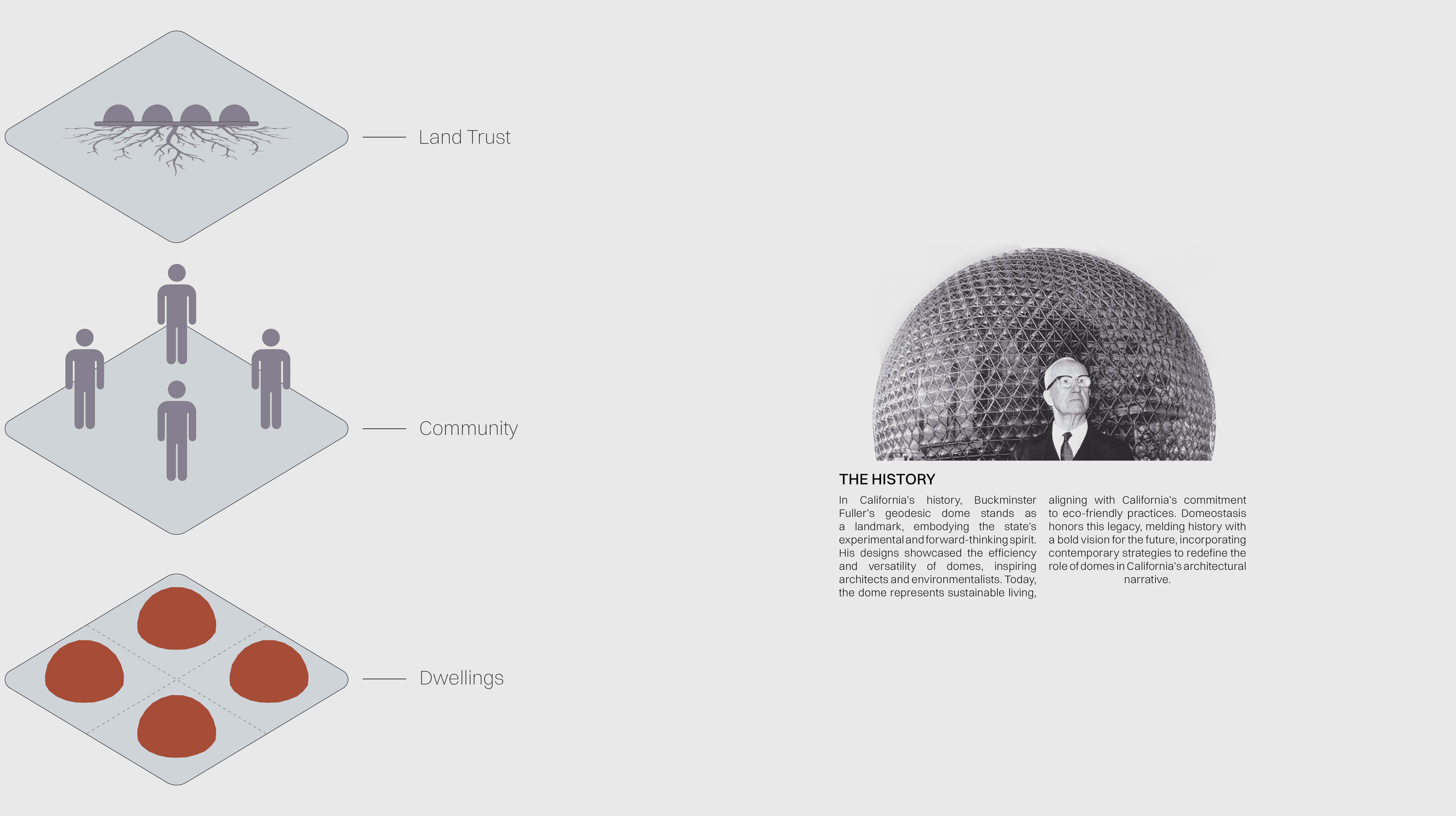 Domeostasis explores the idea of balance between human body, structure, and the environment through an investigation of circular form and spatial pressure. The project uses a series of interconnected domes to create distinct yet interrelated zones that respond to varying degrees of enclosure, light, and movement. Rather than defining a single program, Domeostasis tests how architecture can mediate between open and closed conditions. Users experiencing changes in scale, proportion, and atmosphere. The resulting sequence of spaces highlights the relationship between built form and human experience, using geometry as a tool to prompt both physical and sensory awareness.