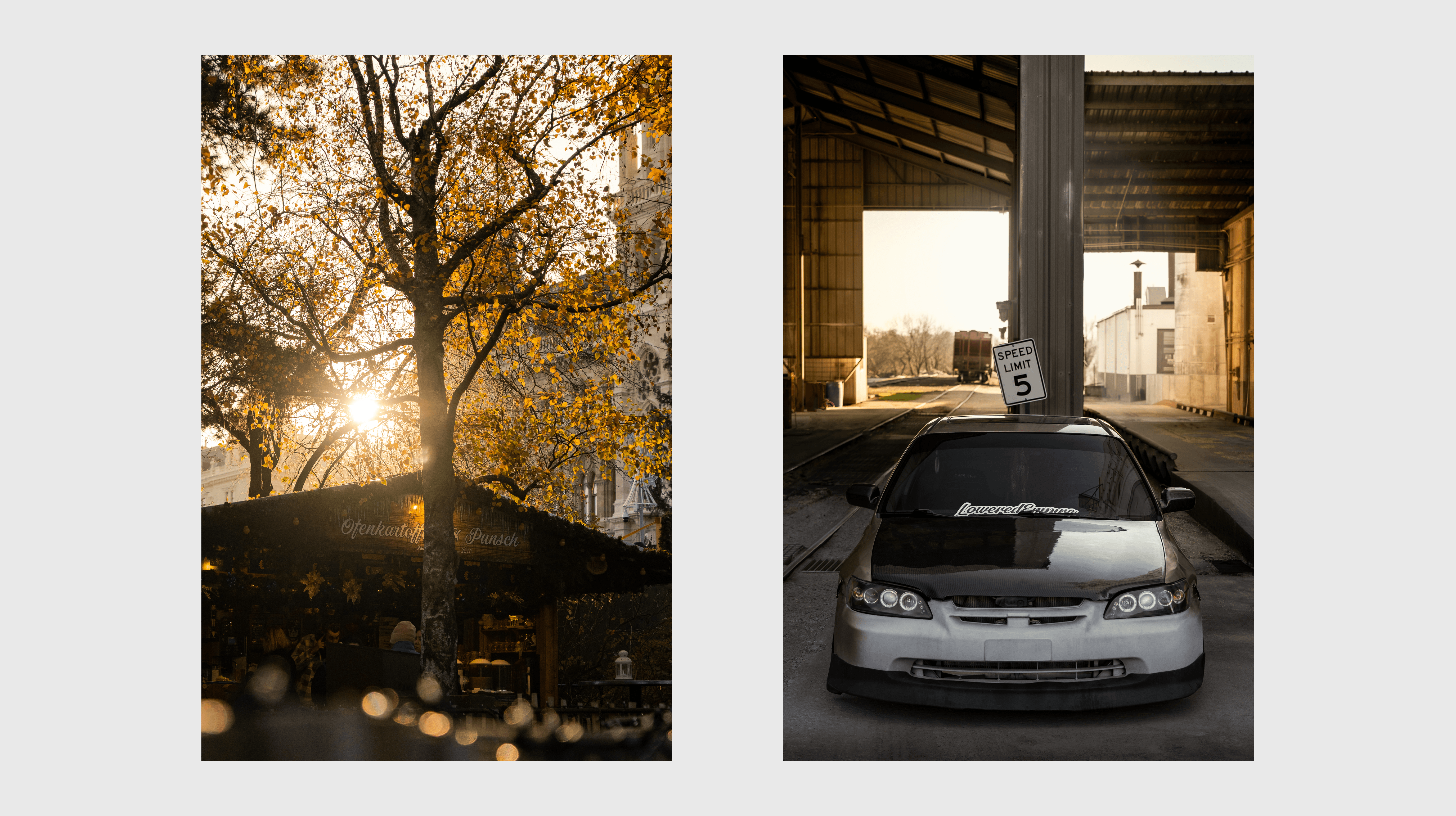 Photography is a long term exploration developed over the past four years, with every image shot and edited by me. The work spans automotive, architectural, and environmental subjects, reflecting my parallel interests in cars, built space, and composition. Across these images, photography becomes a tool for studying form, light, proportion, and framing, allowing moments of movement and stillness to coexist. Whether documenting vehicles or architecture, the focus remains consistent: capturing presence, atmosphere, and the relationship between object and context. This body of work serves as both a personal archive and a visual extension of my design thinking, reinforcing how observation and framing inform the way I approach architecture and design as a whole.