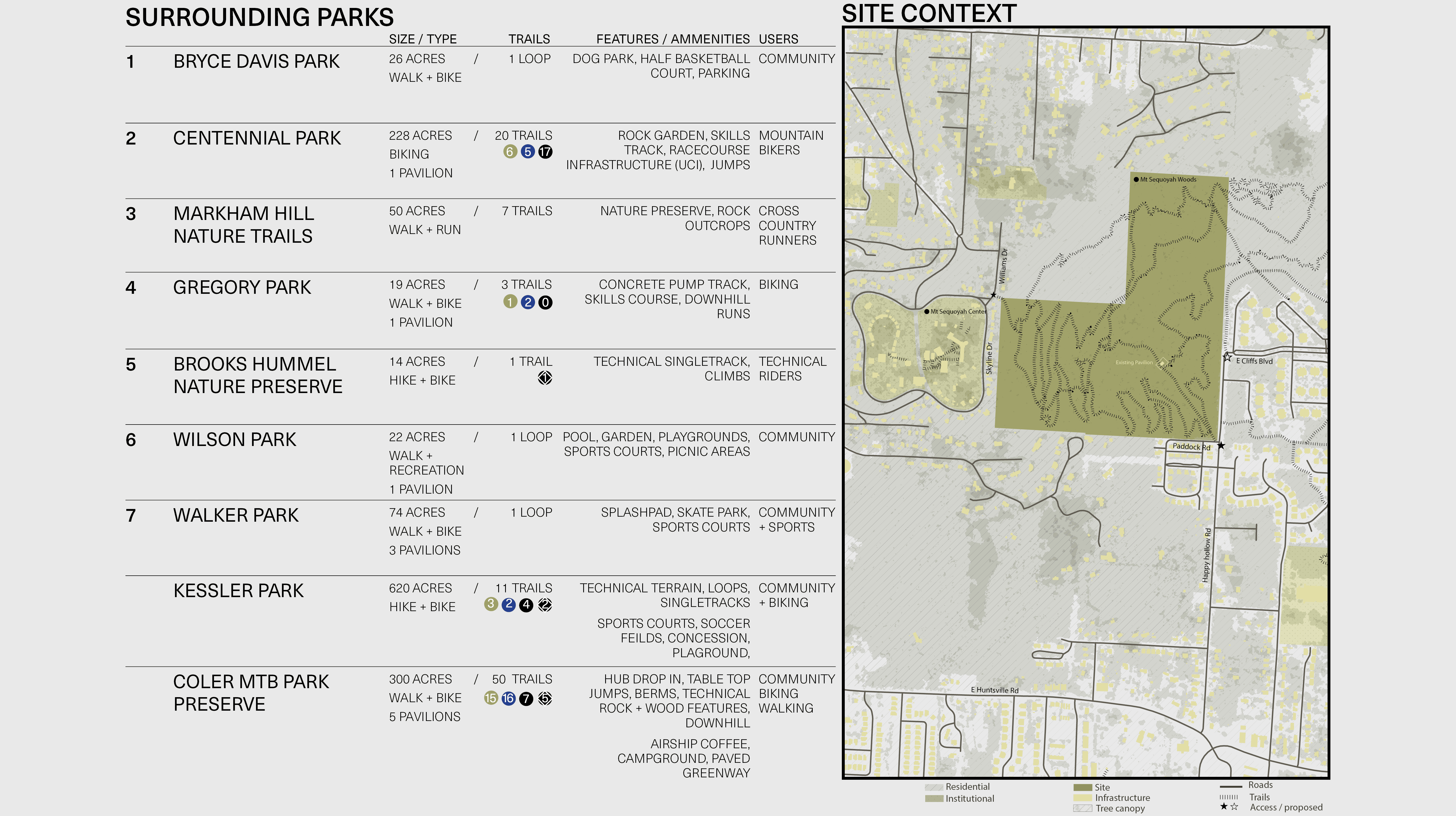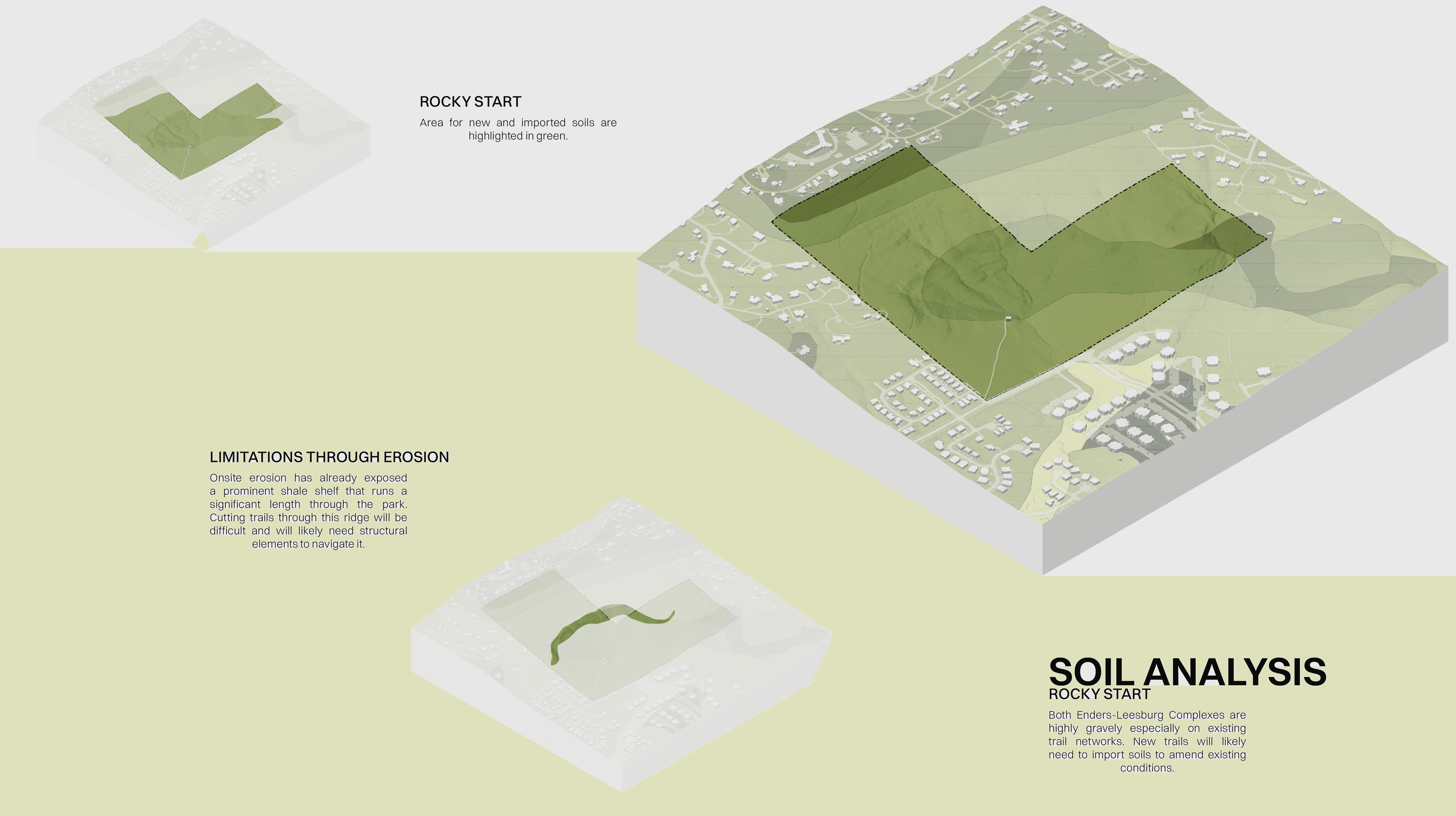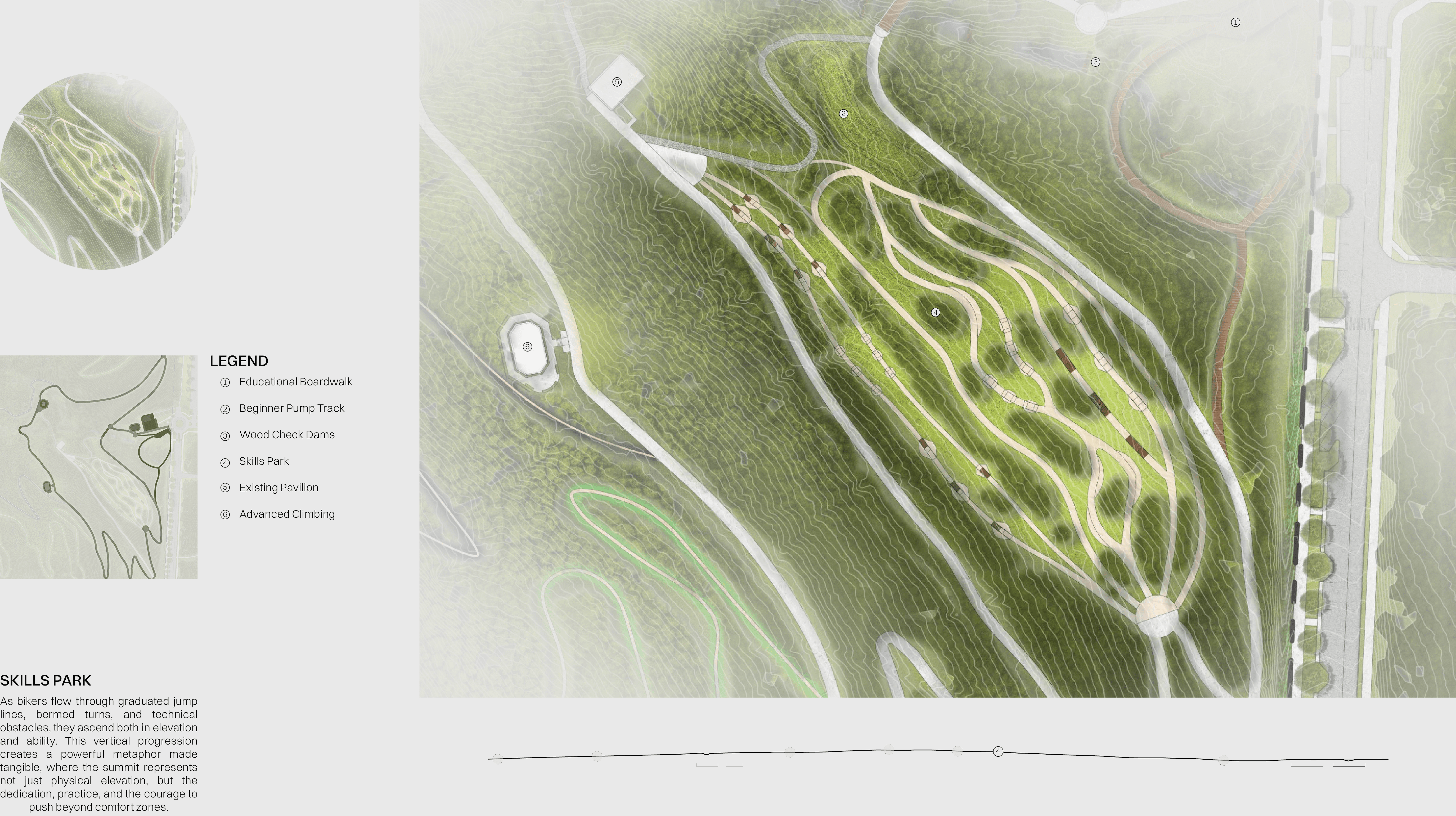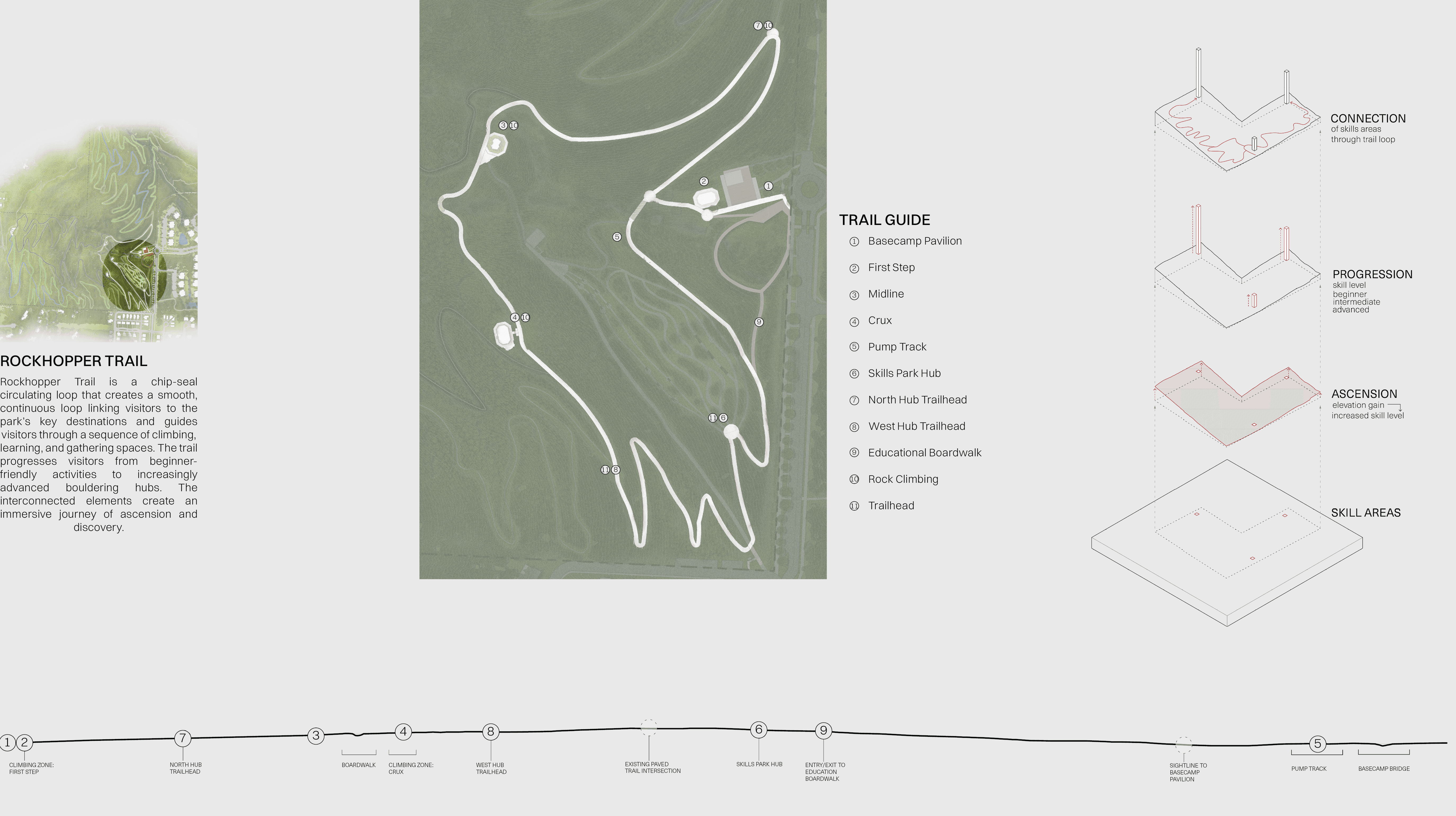 Progression Through Ascension reimagines Mt. Sequoyah Park in Fayetteville Arkansas as a place defined by movement, choice, and gradual growth. The project is built around the idea that progression can shape experience, using overlapping spaces, soft transitions, and flexible paths rather than a single prescribed route. Architecture and landscape work together to create moments for exploration, gathering, and pause, allowing visitors to engage with the site at their own pace. The design process focused on creating an environment where people define their own journey, reinforcing the belief that meaningful spaces are formed through freedom, interaction, and connection.