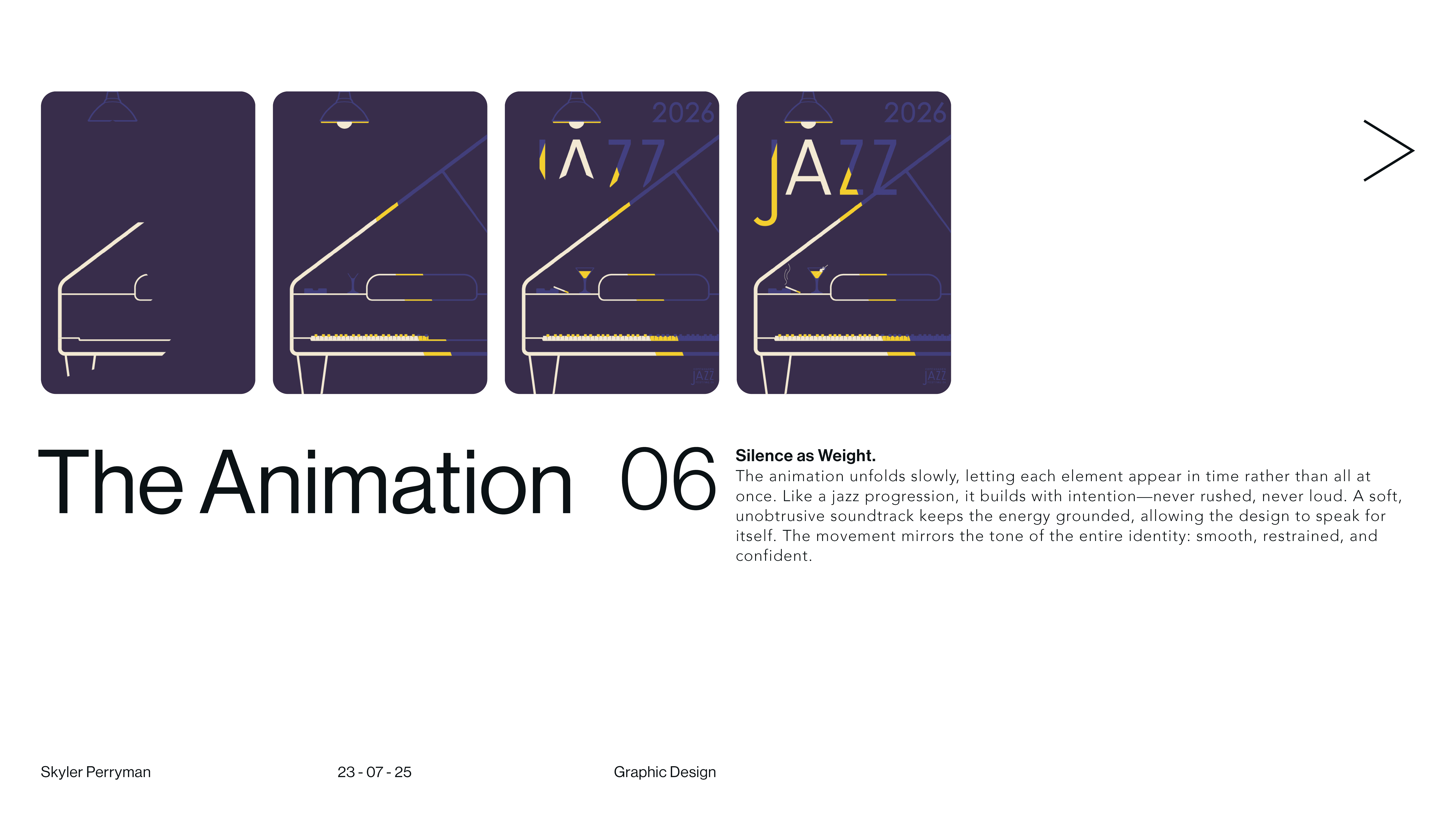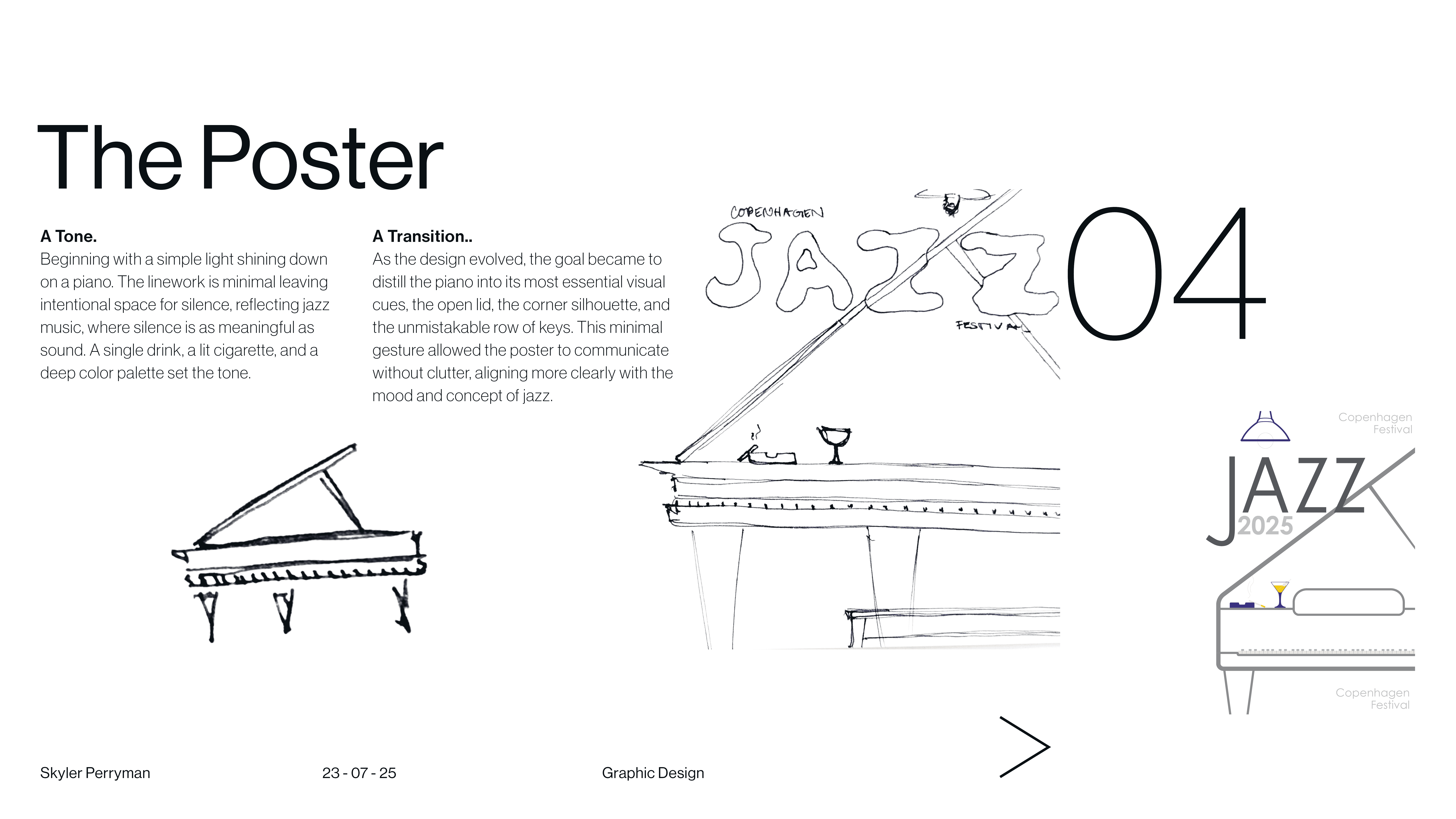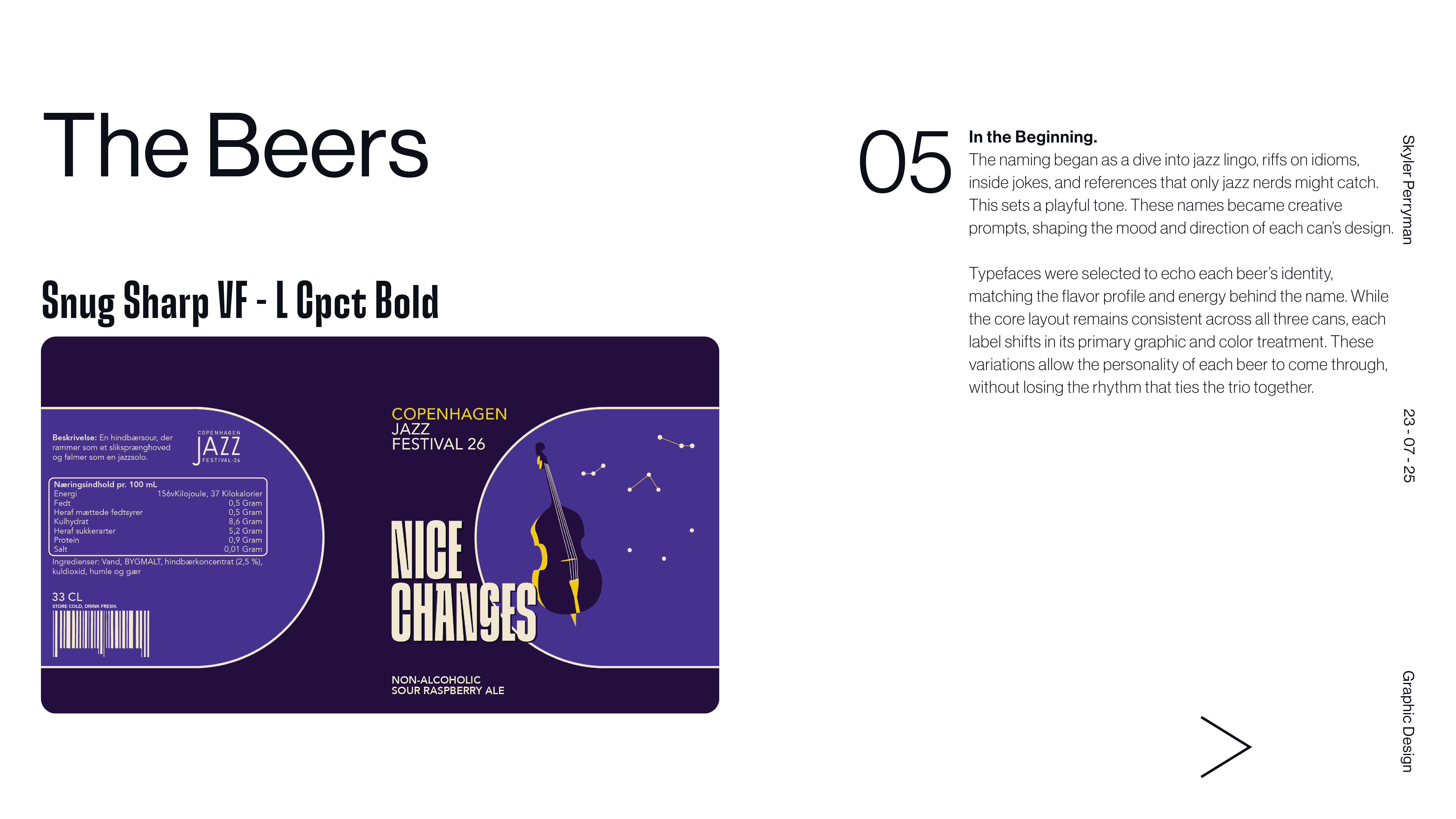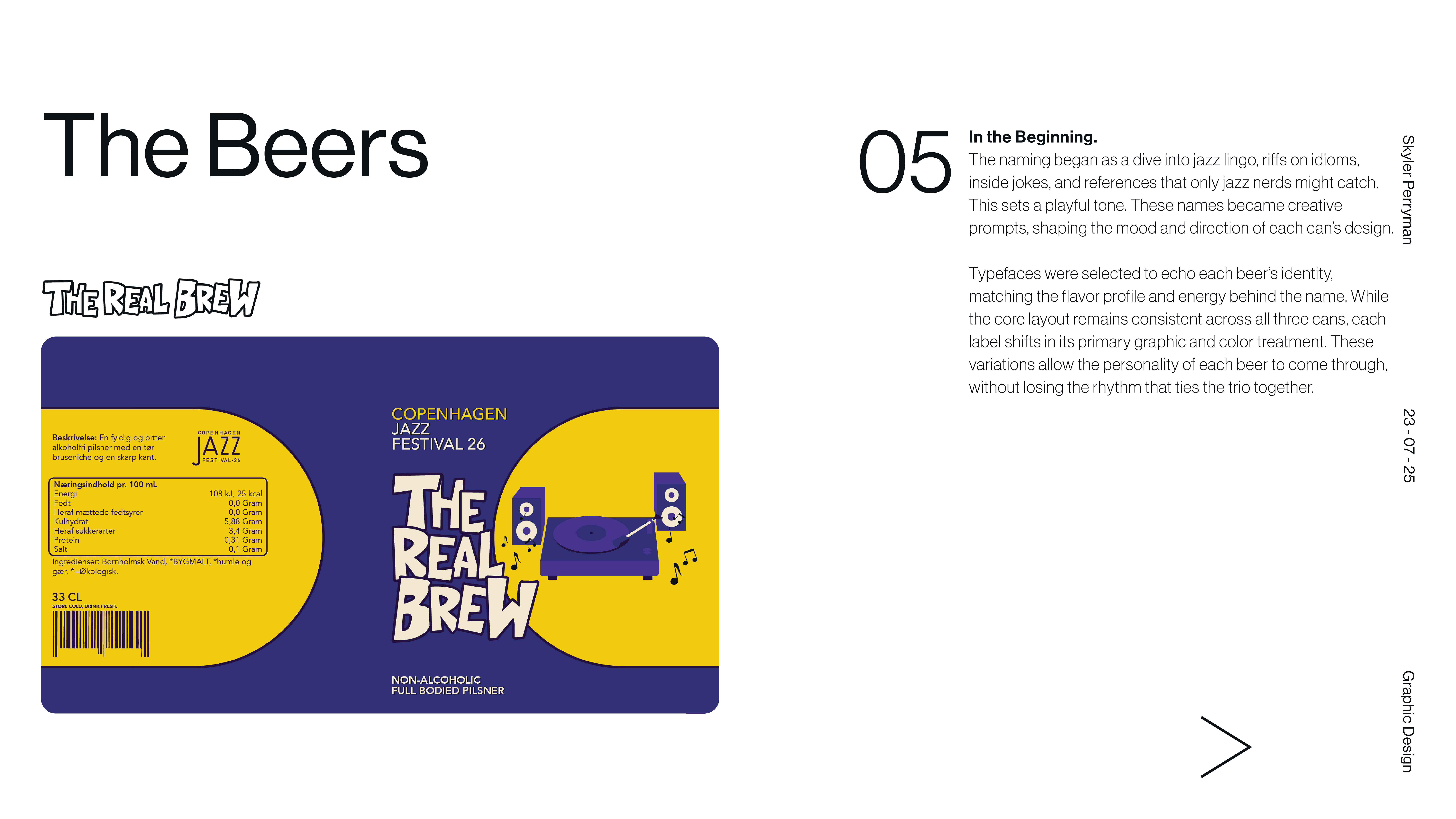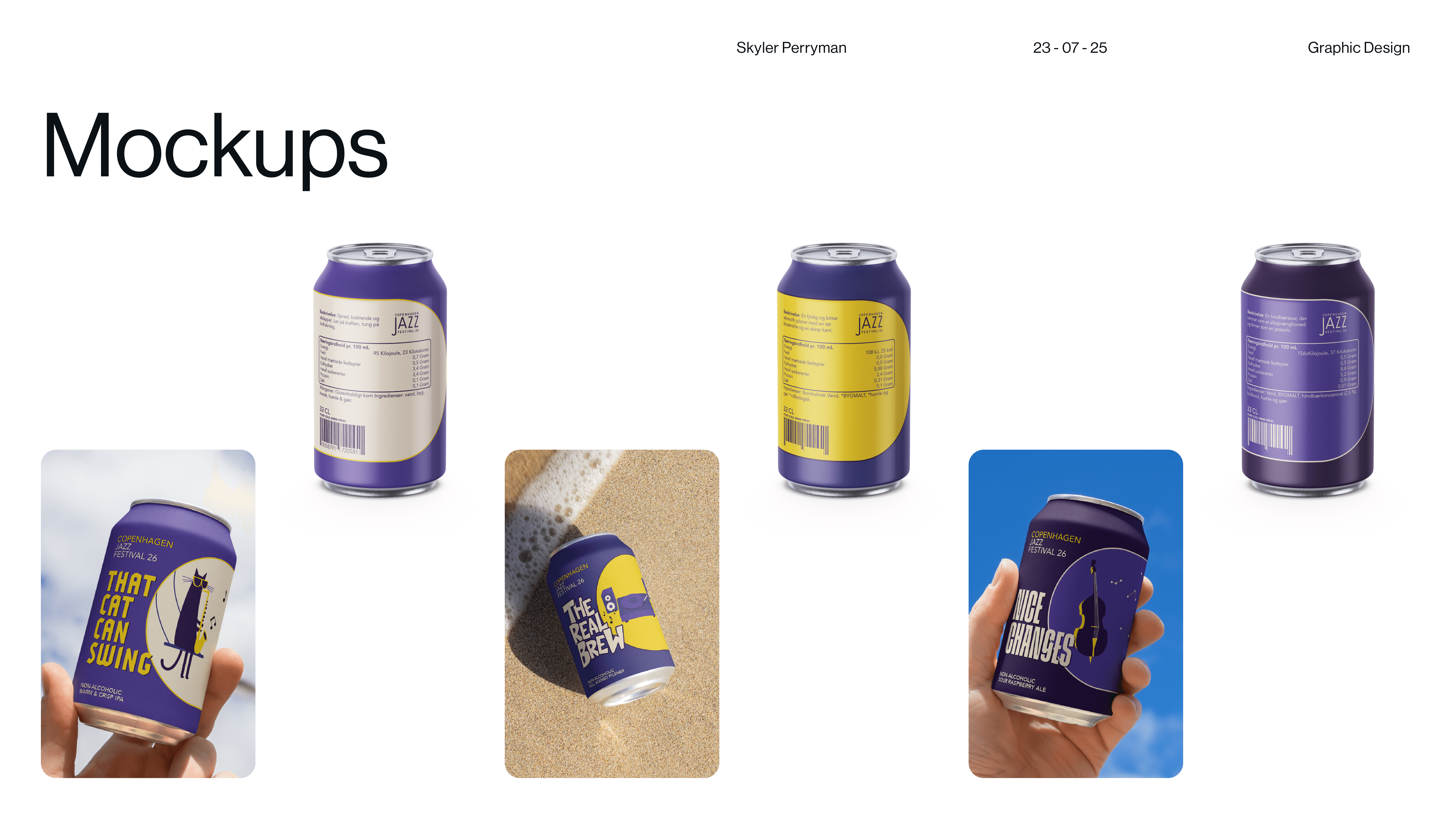 Tipsy on Jazz is a branding and graphic design project that explores how visual identity can capture the looseness, rhythm, and spontaneity of live jazz culture. The main objective was designing 3 non-alcoholic beer cans. The work blends typography, expressive composition, and moody graphic moments to create a system that feels aligns with each of the flavors present in drink. Rather than relying on a single static mark, the identity operates as a flexible language, allowing text and color to shift while remaining cohesive. The result is a brand that feels social, inviting, and slightly off balance in the best way, reflecting the atmosphere of music, movement, and shared experience that defines jazz itself.